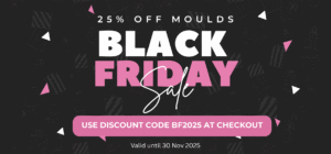 Our moulds are cast in polyurethane. This makes for easy release and they are hard wearing and not easily susceptible to heat or water damage. There may be some slight discolouration, sanding scratches or defect but this will not affect the performance of the mould or the outcome of the bath bomb! If you find it necessary in time to sand the mould, polyurethane is easily sanded and will not melt.